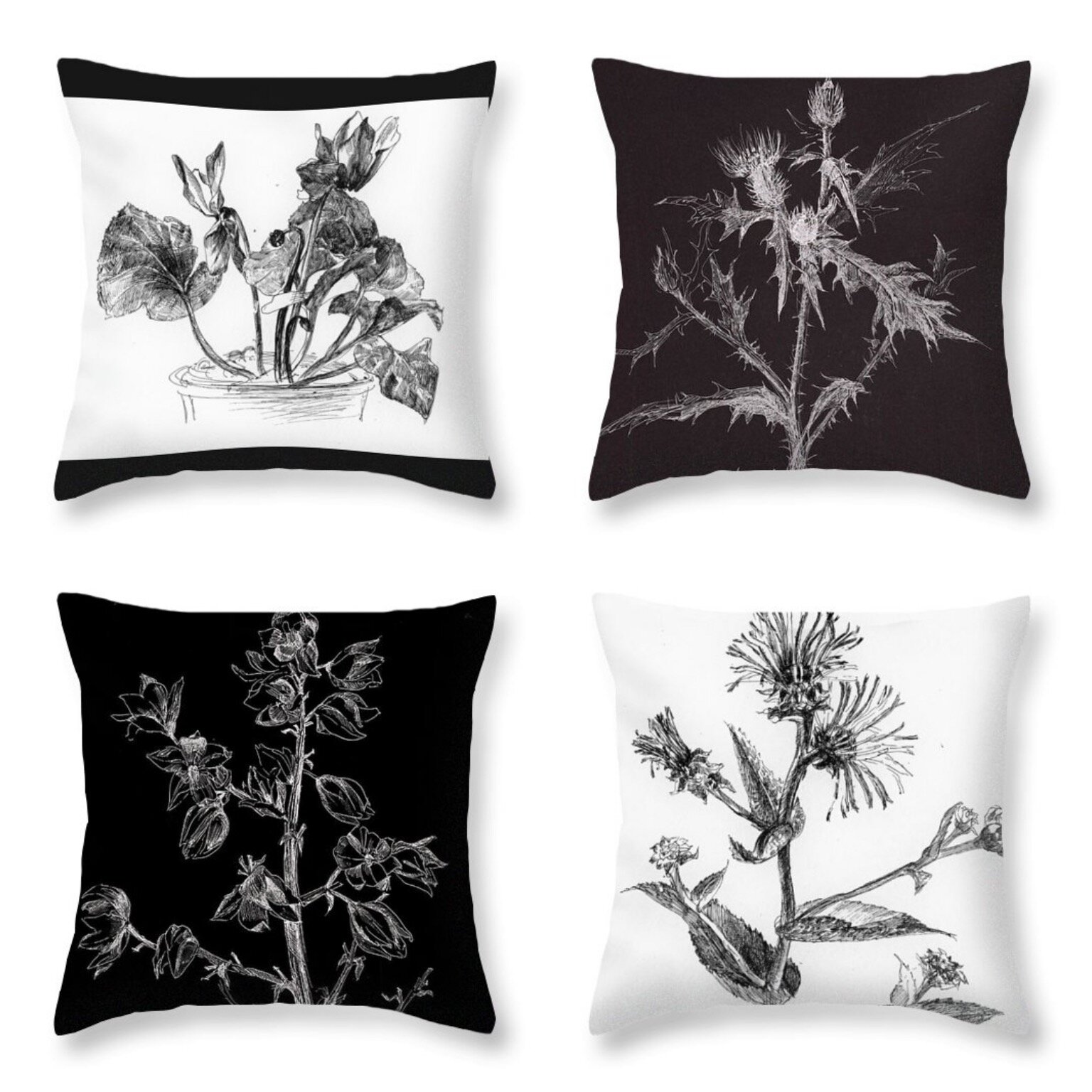 This post is about black & white home decor collection featuring my original black and white floral drawings.